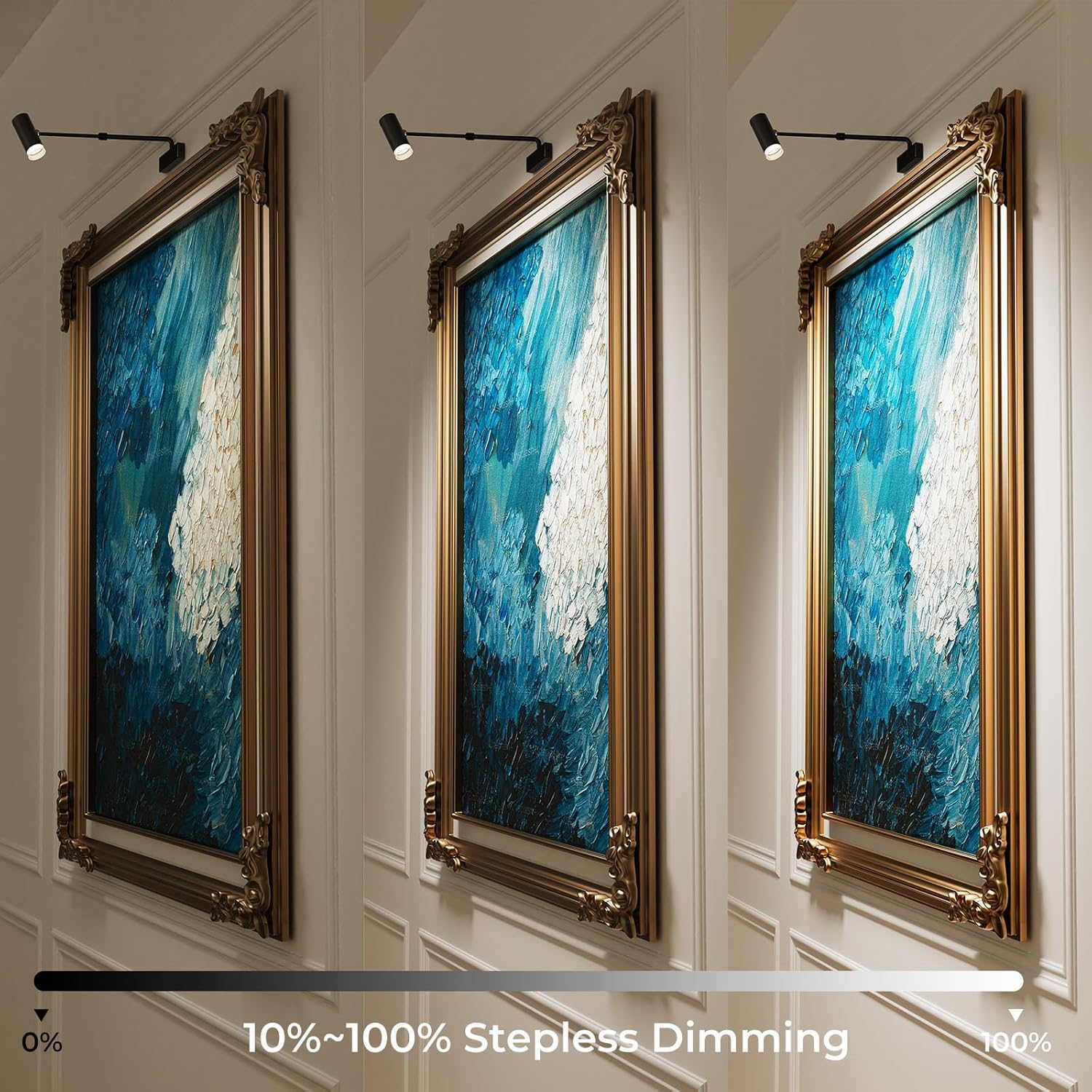 - [Remote and Touch Control]: Remote and touch control combined, so you can easily control the painting light by your need. The gallery light can adjust 3CCT color temperatures and brightness dimming. It also has memory and timing functions. Let you enjoy the convenience of technology while appreciating the decorations.