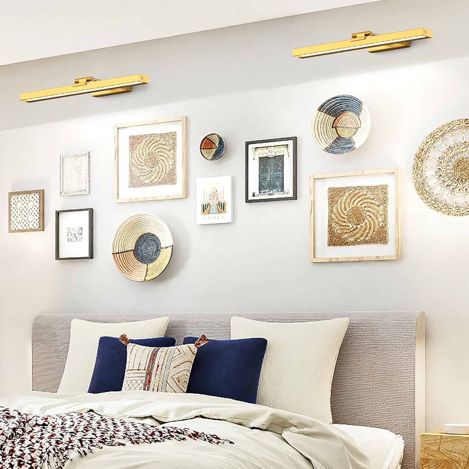 - [Ideal Lighting Effects]: Special designed PESUTEN gold wall art light provides the wall-washing effect and flexible angle adjustment. Let every picture and painting be shown in the dazzling light. The unique spotlight bead design makes the light brighter and the lighting range wider.
